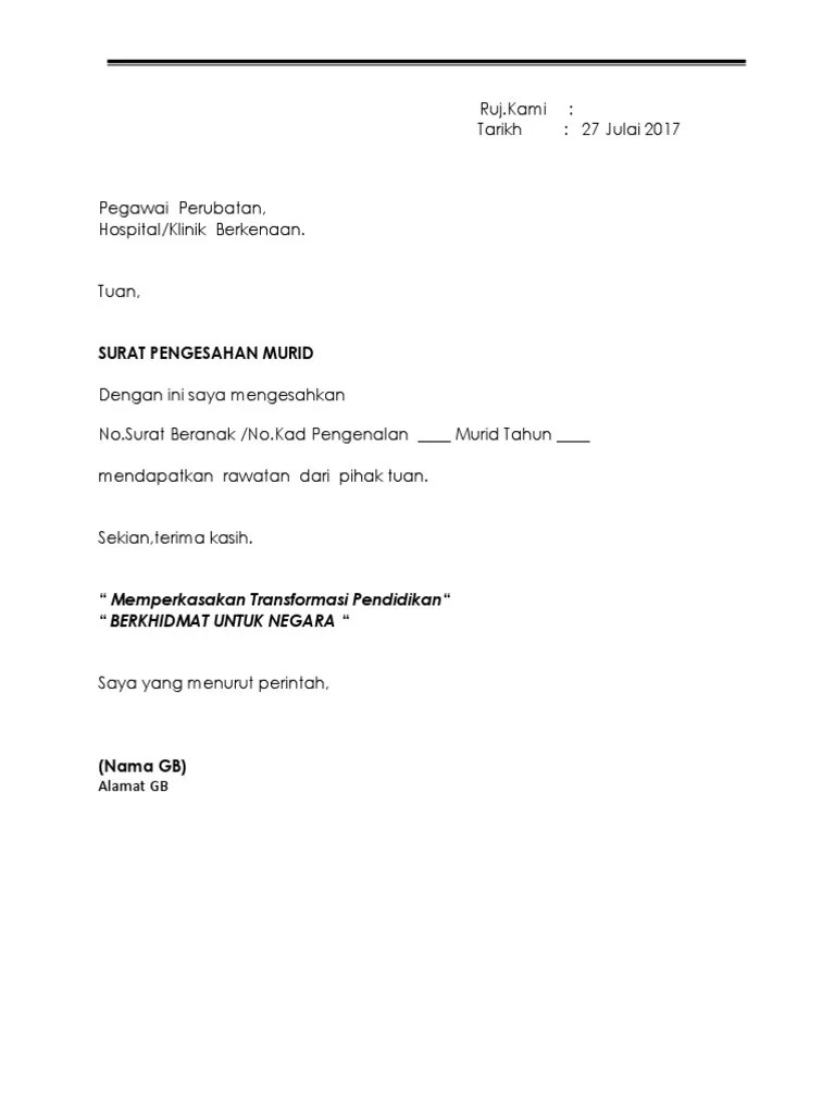 Contoh surat pengesahan masuk wad contoh surat terbaru.